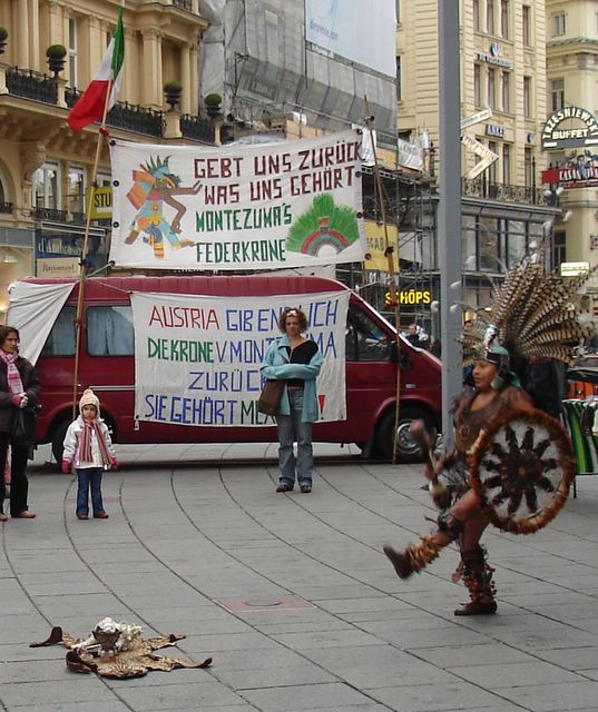 A picture from my weekend trip to Vienna. A group of Mexicans where protesting on the Stephansplatz (center of Vienna) to get the crown of Montezuma (Kopilli Ketzalli) back.