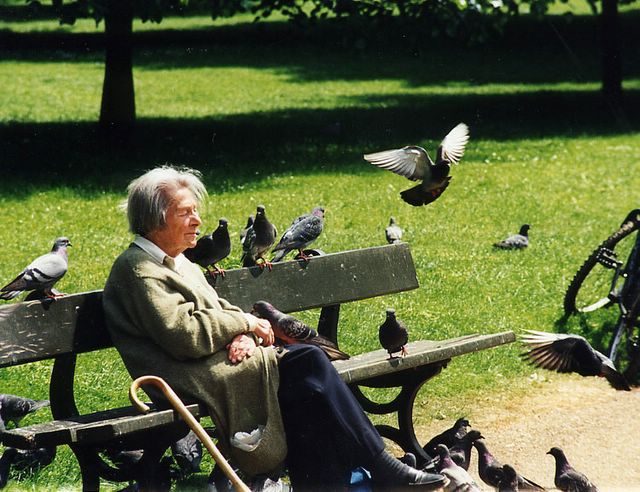 London, old lady on a bench in London Hyde Park