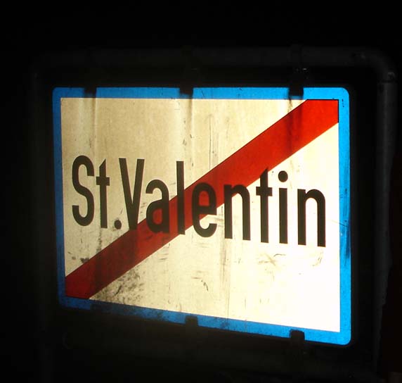 This picture was taken excatly two year ago, at the St. Valentine Village in Upper Austria. My friend took a picture of the other side of the street-sign for her friends. Where ever you are around the world, I leave it up to you, if you want to make some happy, buy them flowers, if you just feel the need to spend some money because marketing says so – don’t! – Still – flowers are one of the best ways to say “I love you” – even on the 15th of Februar!