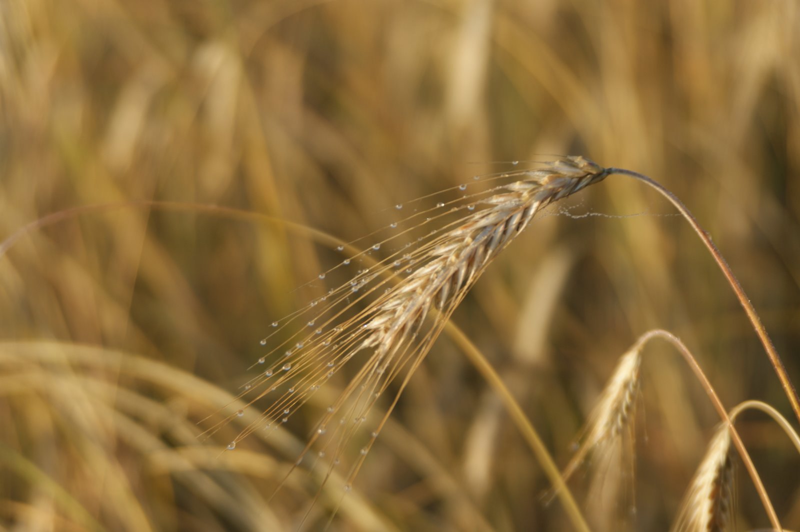 I recently bought a new digital SLR and this is one of the first pictures I took. A grain field in the morning hours. It had been foggy during the night and as the sun came up, the little waterdrops on thethe spikes sparkled in the sunshine.